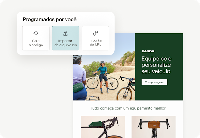 - Crie e baixe como HTML seus e-mails criados no Canva e envie-os para o Mailchimp. Veja a prévia e teste seu e-mail para ter certeza de que ficará ótimo em todos os locais. Disponível para clientes Free+Essentials até 31/12.