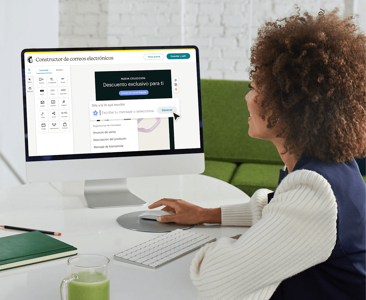 Las herramientas de diseño fáciles de usar de Mailchimp te permiten comenzar a vender y atraer clientes de inmediato, incluso si solo estás aprendiendo los conceptos básicos de email marketing.